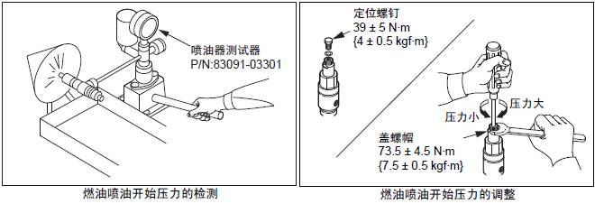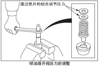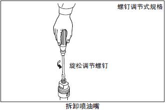 (2) 以大約每秒1次的速度向下壓手柄,檢測噴油的開(kāi)始壓力。不在標準值范圍以?xún)葧r(shí)進(jìn)行調整。