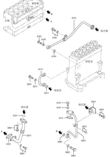 2 三菱S6R發(fā)動(dòng)機冷卻水管