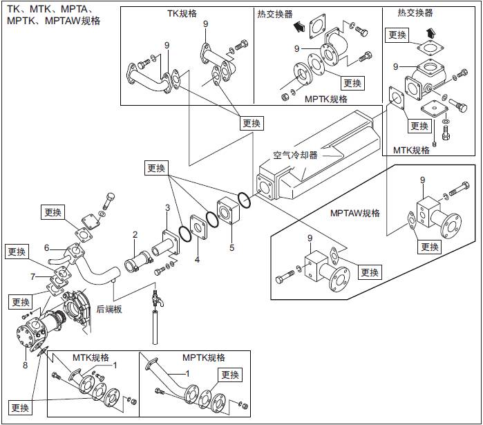 1.4 三菱S6R發(fā)動(dòng)機空氣冷卻器用水泵、三菱S6R發(fā)動(dòng)機恒溫器、水管的拆卸,檢修