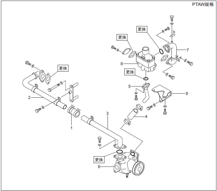1 三菱S6R發(fā)動(dòng)機冷卻水管