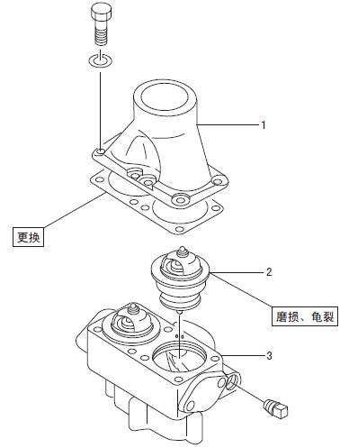 1 三菱S6R發(fā)動(dòng)機恒溫器端蓋   2 三菱S6R發(fā)動(dòng)機恒溫器   3 三菱S6R發(fā)動(dòng)機恒溫器殼體