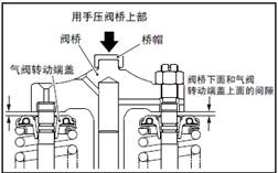1.6 測量閥橋下面和三菱S6R柴油發(fā)動(dòng)機氣閥門(mén)轉動(dòng)端蓋上面的間隙