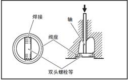 將螺栓等焊接在閥座上,用軸棒從三菱S6R柴油發(fā)動(dòng)機氣缸頭上面插入三菱S6R柴油發(fā)動(dòng)機氣閥門(mén)導管孔內打擊,拆出閥座。