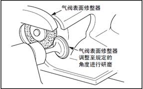 注:(a) 三菱S6R柴油發(fā)動(dòng)機氣閥門(mén)表面修整器調整至規定的角度,研磨三菱S6R柴油發(fā)動(dòng)機氣閥門(mén)。
