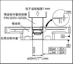 注: 后惰齒輪襯套是以半成品狀態(tài)提供的,因此壓入后必須進(jìn)行鉸孔加工。