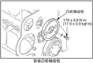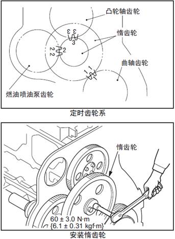 (6) 確認正時(shí)齒輪的裝配記號和圖示一致。