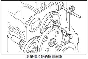 測量惰齒輪的軸向間隙。超過(guò)極限值時(shí),更換故障原因的零部件。