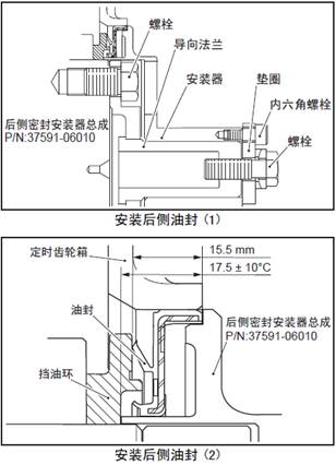 (4) 旋緊導向法蘭上的螺栓,將油封插入正時(shí)齒輪箱內。