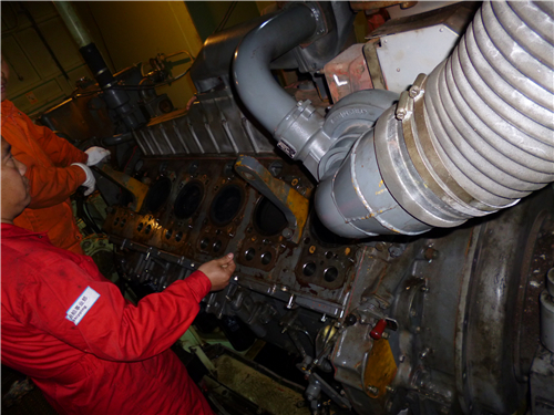 (3) 確認三菱S6R柴油發(fā)動(dòng)機凸輪軸能輕松地轉動(dòng)。