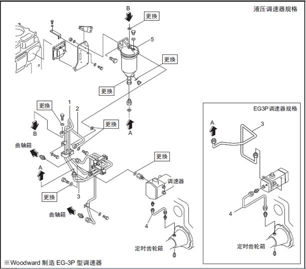 1.4 三菱S6R柴油發(fā)動(dòng)機調速器潤滑油濾清器的拆卸,檢修