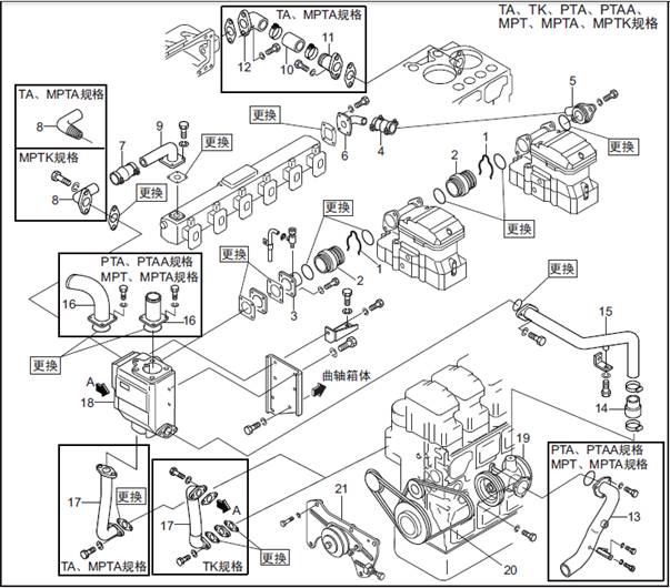 1. 三菱S6R柴油發(fā)動(dòng)機冷卻系統的拆卸,檢測