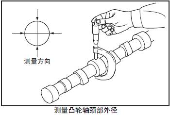 測量三菱S12柴油發(fā)動(dòng)機凸輪軸頸部正交兩個(gè)方向的外徑。超過(guò)極限值時(shí)更換新的三菱S12柴油發(fā)動(dòng)機凸輪軸。