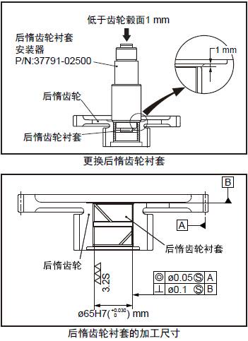 注: 更換惰齒輪襯套后適用時(shí),對惰齒輪襯套的內徑進(jìn)行鉸削加工。