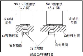 (2) 三菱S12柴油發(fā)動(dòng)機缸體的定位螺栓孔和三菱S12柴油發(fā)動(dòng)機凸輪軸襯套的定位螺栓孔對準后,安裝三菱S12柴油發(fā)動(dòng)機凸輪軸襯套,用定位螺栓固定。