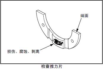 檢查三菱S12柴油發(fā)動(dòng)機推力片的接觸面、背面和端面,如有接觸不良、滑動(dòng)損傷、腐蝕、異物嵌入等異常時(shí)更換新品。