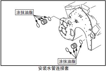 (2) 安裝三菱S12柴油發(fā)動(dòng)機缸體和齒輪箱的水管連接套,注意不要損傷O形圈。
