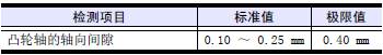 測量三菱S12柴油發(fā)動(dòng)機凸輪軸的軸向間隙。超過(guò)極限值時(shí),確定故障部件后更換。