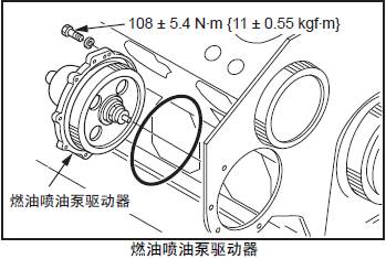 (1) 在三菱S12柴油發(fā)動(dòng)機燃油噴油泵驅動(dòng)器殼體的安裝面上裝上O形圈。在法蘭面上涂抹一薄層密封劑(ThreeBond 1212)。