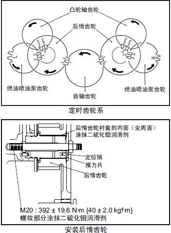 (6) 確認三菱S12柴油發(fā)動(dòng)機正時(shí)齒輪的安裝記號和圖一致。