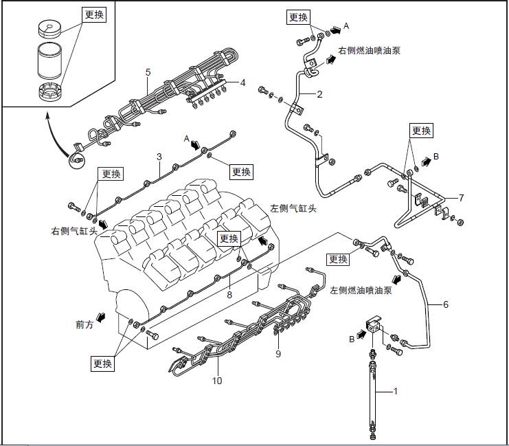 1.1 燃油三菱S12柴油發(fā)動(dòng)機噴油管、燃油溢流管的拆卸、檢測