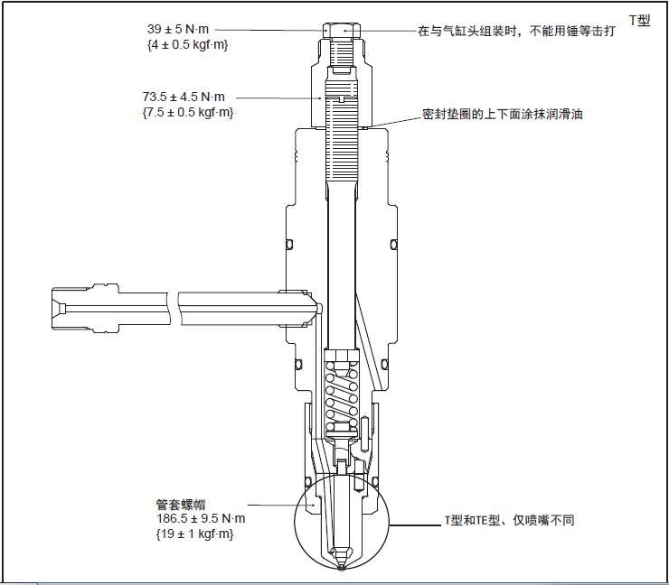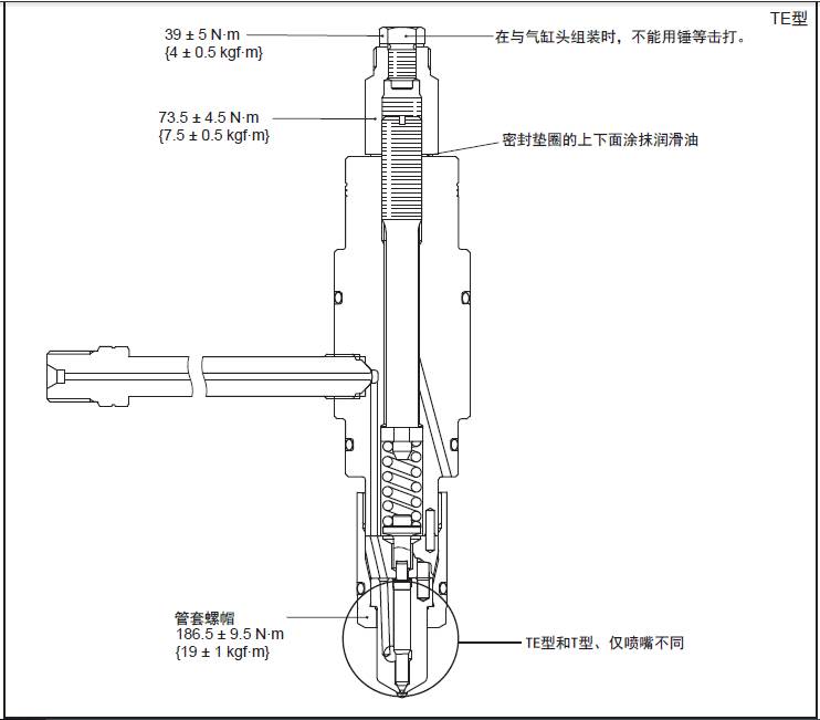 (4) 噴油嘴的管套螺帽要按照規定的扭矩緊固。