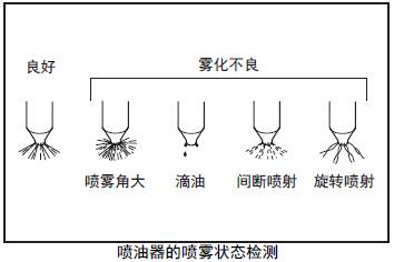 在三菱S12柴油發(fā)動(dòng)機噴油器試驗臺上調整壓力的同時(shí),檢查噴孔堵塞、噴霧狀態(tài)以及噴孔內有無(wú)漏油現象等。噴霧不良時(shí),清洗或更換噴油嘴。