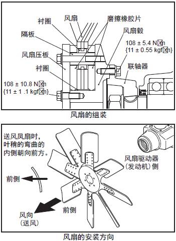 注: 安裝時(shí),注意三菱S12柴油發(fā)動(dòng)機風(fēng)扇的安裝方向( 風(fēng)向:排出) 不要裝錯。