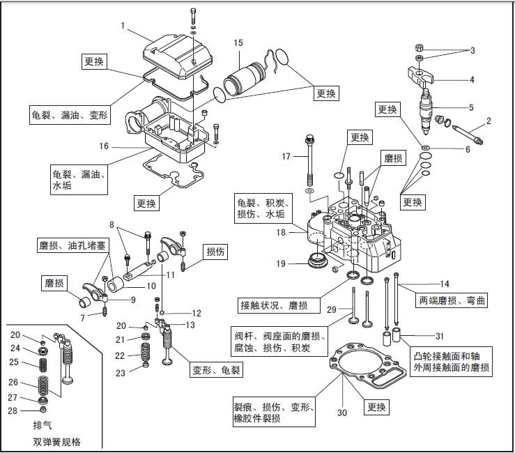 24 氣閥轉動(dòng)端蓋(24 ~ 28 排氣雙三菱R16柴油發(fā)動(dòng)機氣閥彈簧規格)