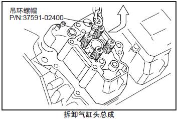 注: 三菱R16柴油發(fā)動(dòng)機氣缸頭由定位銷(xiāo)固定,要垂直于安裝面拆卸。