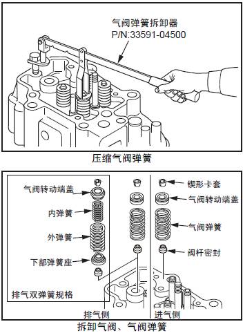 1.11 拆卸氣閥、三菱R16柴油發(fā)動(dòng)機氣閥彈簧