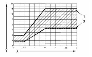 3. 擰緊調節螺栓 (1)。 擰緊安裝螺栓 (2)。 有關(guān)正確