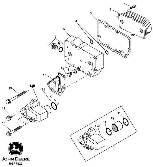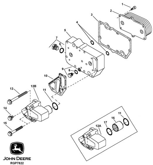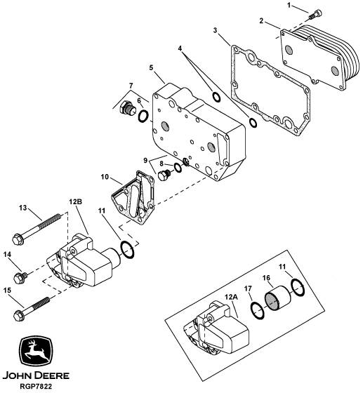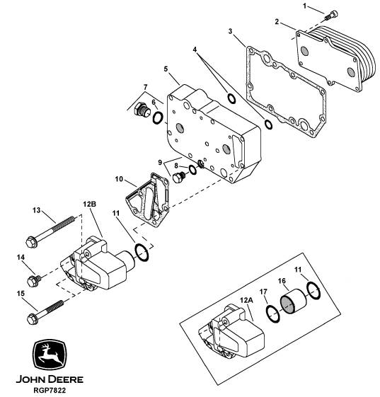 John Deere約翰迪爾強鹿6068 6.8L柴油發(fā)動(dòng)機機油冷卻器零件圖冊