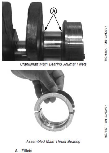 IMPORTANT: Crankshaft grinding should be doneONLY by experienced personnel onequipment capable of maintainingcrankshaft size and finishspecifications. Undercut and rolledfillets (A) have taken the place ofground (tangential) fillets. DO NOTgrind within this undercut area whenundersize bearings are used.