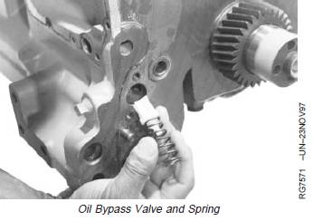 · Oil pressure regulating valve, if equipped with cartridgetype. (See REMOVE AND INSTALL OIL PRESSUREREGULATING VALVE in Group 060.)