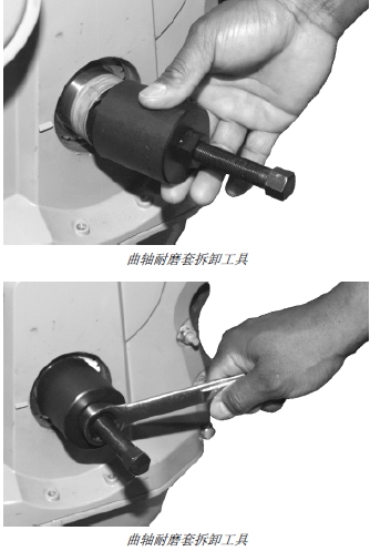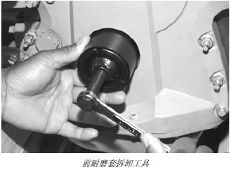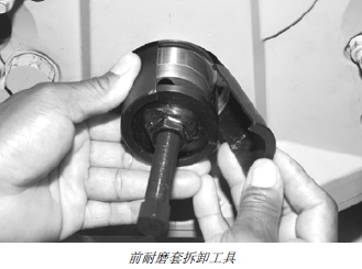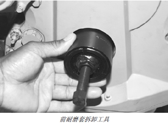 注意: 如果拆卸過(guò)程中耐磨套的凸輪緣開(kāi)始滾動(dòng),應卸下拉拔器總成,使用更寬爪的夾頭卡住耐磨套。