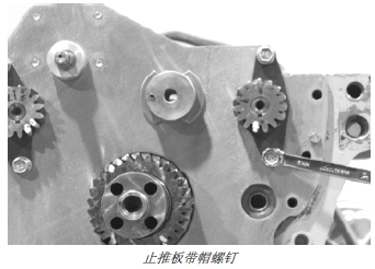 2. 如果本章上述測量過(guò)程中,惰輪軸向間隙不符合技術(shù)規格的要求,應從前板拆下惰輪軸和止推墊圈。(參見(jiàn)本章后面的“拆卸上下惰輪軸”部分。)