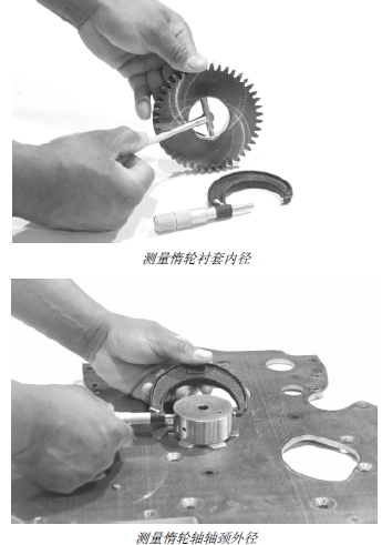 1. 測量惰輪襯套內徑和惰輪軸外徑,確定油隙。如果油隙超過(guò)技術(shù)規格的要求,應更換磨損的零部件。