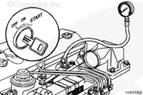 將壓縮適配器(零件號 3164627)或等效工具安裝到缸體的噴嘴支架安裝部分以便于測量。