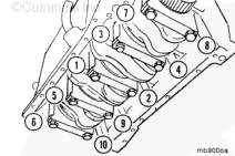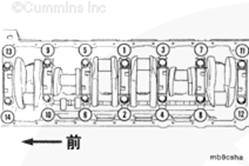 注: 主軸承蓋有位置編號。從缸體前端的 1 號開(kāi)始,編號必須朝向康明斯ISB5.9 G CM2180發(fā)動(dòng)機的凸輪軸側。