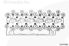 由于缸蓋松弛,重新擰緊短螺釘(1 號、2 號、3 號、6 號、7 號、8 號、9 號、10 號、11 號、14 號、15 號、16 號、17 號、18 號、19 號、22 號、23 號、24 號、25 號和 26 號),以符合正確的缸蓋緊固要求。