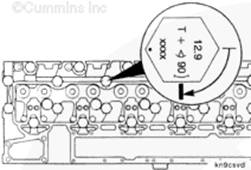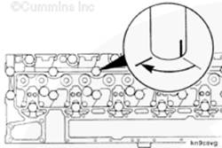 使用服務(wù)軟件(零件號 3823921)檢查所有缸蓋螺釘的長(cháng)度是否正確。