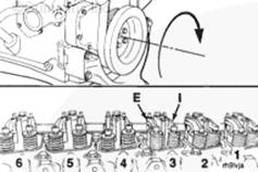 轉動(dòng)螺釘直到在缸蓋上做的標記進(jìn)入螺釘頭的“窗口”中。