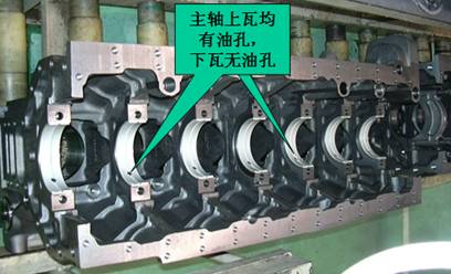 1主軸瓦上片有油槽和進(jìn)油孔,與軸承座孔和主油道相通。下主軸瓦沒(méi)有油孔,安裝時(shí)應注意不要裝錯,以免堵塞油路。