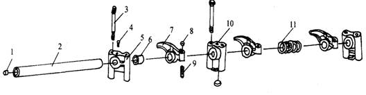 3:為防止搖臂在工作時(shí)發(fā)生軸向移動(dòng),搖臂軸上兩搖臂之間裝有搖臂軸彈簧。