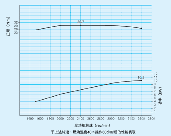 發(fā)動(dòng)機3600 rpm時(shí),功率達10.2 kW,13.7 bhp