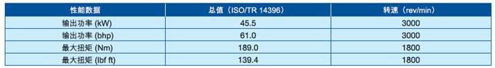 3000 rpm時(shí),功率達45.5 kW/61.0 bhp