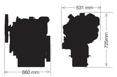 ★側裝的內置渦輪增壓器,在提供額外動(dòng)力之余,只令組裝尺寸稍為增加,設備安裝工作因而變得更輕松。