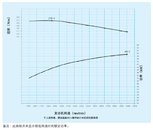 于2800 rpm時(shí),功率達49.3 kW,66.0 bhp