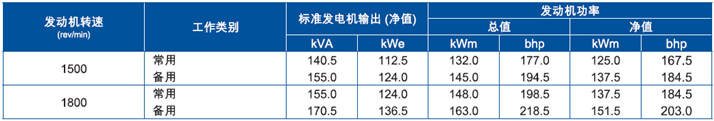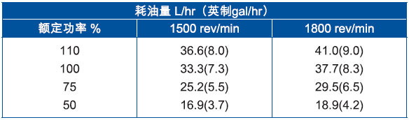 上表所有額定功率數據均為配備標準尺寸風(fēng)扃與驅動(dòng)器比率的發(fā)動(dòng)機,ISO/TR 14396/IS0 8528條件下操作時(shí)數據。有關(guān)上述條件以外操作的數據請咨詢(xún)珀金斯公司,Perkins提供的性能公差為±5%。電氣參數假設功率因數為0.8與發(fā)動(dòng)機效率90%。