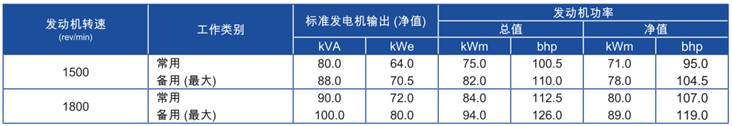 上表所有額定功率數據均為ISO/TR 14396/IS0 8528條件下操作時(shí)數據。